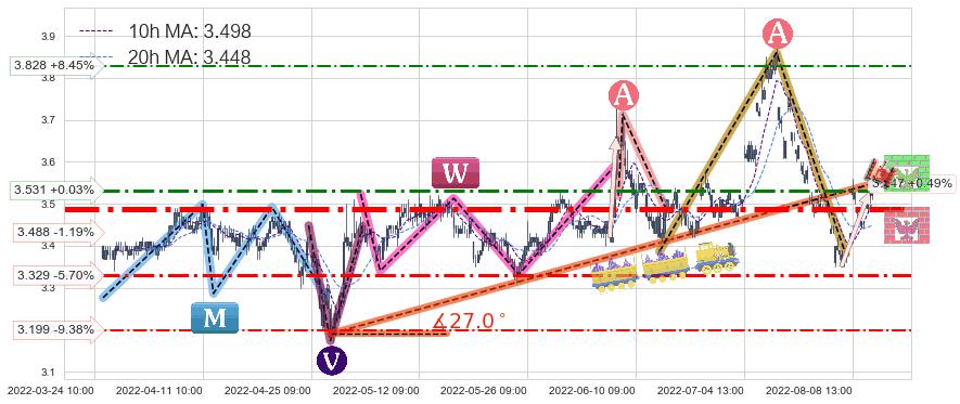 ♘ 阻力价格位3.531,可信任强度62.45%,距离最后交易2022-08-12 14:00形成的收盘价格3.530相差 +0.03%