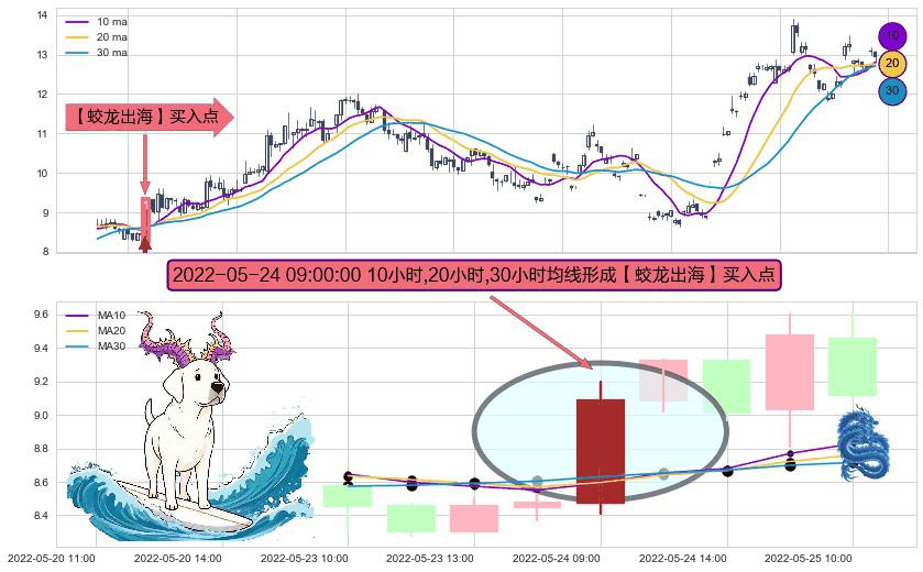 ⚀ 2022-05-24 09:00:00小时显现 10小时-20小时-30小时均线 【蛟龙出海】买入点 看多信号,后市看涨,买入
