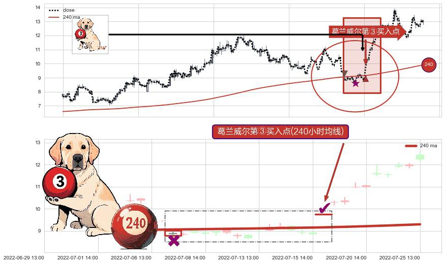 ⚀ 2022-07-18 13:00:00-小时显现 葛兰威尔均线 240小时均线 第③买入点 上升趋势的中继信号,后市看涨,买进信号