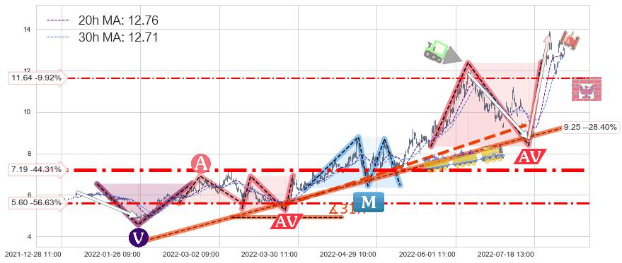 ♞ 20小时均线:12.76,30小时均线:12.71→ 快线>慢线