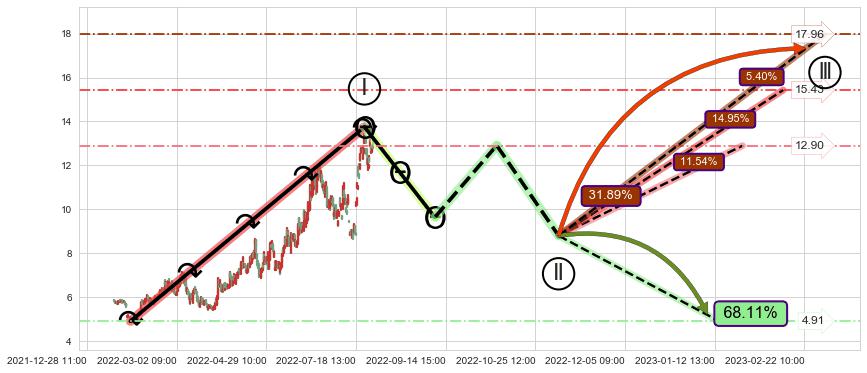 ♘ 支撑价格位7.19,可信任强度97.17%,距离最后交易2022-08-12 14:00形成的收盘价格12.92相差 -44.31%