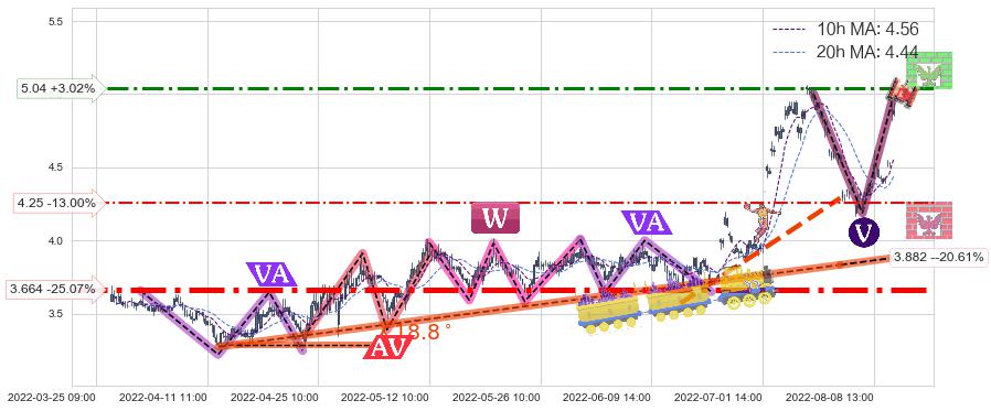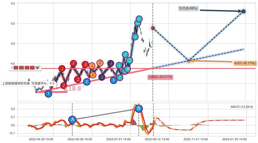 ♘ 支撑价格位4.25,可信任强度44.81%,距离最后交易2022-08-12 14:00形成的收盘价格4.89相差 -13.00%