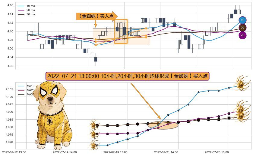 ⚀ 2022-07-21 13:00:00小时显现 10小时-20小时-30小时均线 【金蜘蛛】买入点 看多信号,后市看涨,买入