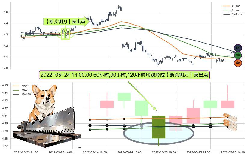 ⚀ 2022-05-24 14:00:00小时显现 60小时-90小时-120小时均线 【断头铡刀】卖出点 看空信号,后市看跌,卖出