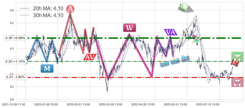 ♞ 20小时均线:4.10,30小时均线:4.10→ 快线<慢线