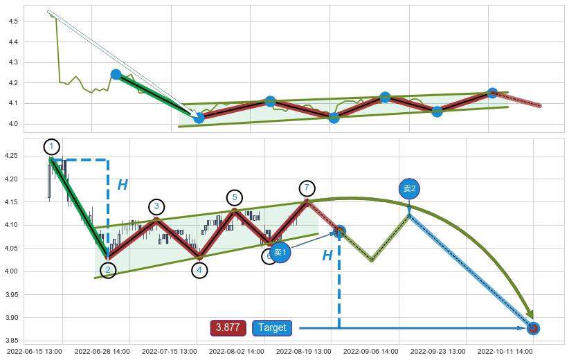 ➣ 最小中继整理跌幅→𝐇: 0.210000 (𝐇旗杆的长度:旗杆起点→顶点)