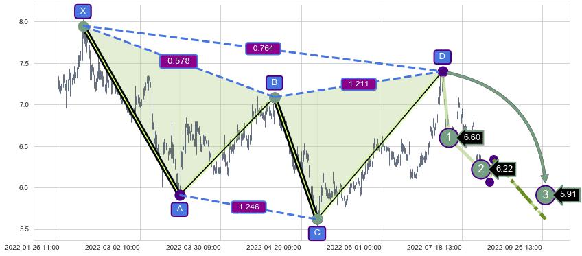 ➢ AB回撤位置在XA的57.8%,符合形态要求