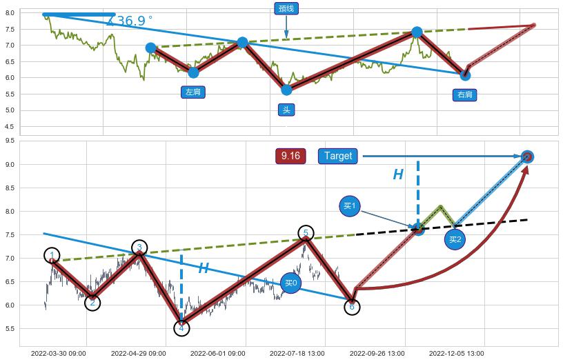 ➣ 最小反转涨幅→𝐇: 1.5482 (头部与颈线垂直距离)