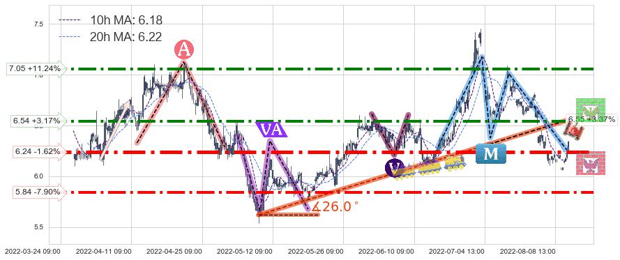 ♞ 10小时均线:6.18,20小时均线:6.22→ 快线<慢线