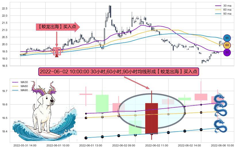 ⚀ 2022-06-02 10:00:00小时显现 30小时-60小时-90小时均线 【蛟龙出海】买入点 看多信号,后市看涨,买入
