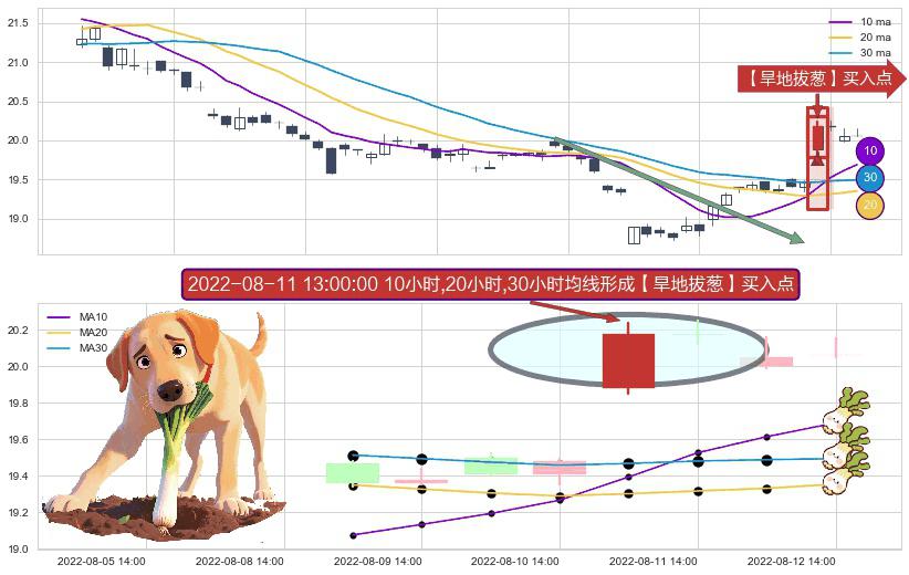 ⚀ 2022-08-11 13:00:00小时显现 10小时-20小时-30小时均线 【旱地拔葱】买入点 看多信号,后市看涨,买入