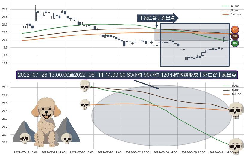 ⚀ 2022-07-26 14:00:00-小时至2022-08-11 14:00:00-小时显现 60小时-90小时-120小时均线 【死亡谷】卖出点 看空信号,后市看跌,卖出