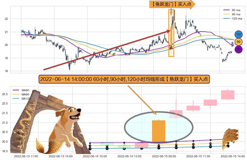 ⚀ 2022-06-14 14:00:00小时显现 60小时-90小时-120小时均线 【鱼跃龙门】买入点 看多信号,后市看涨,买入