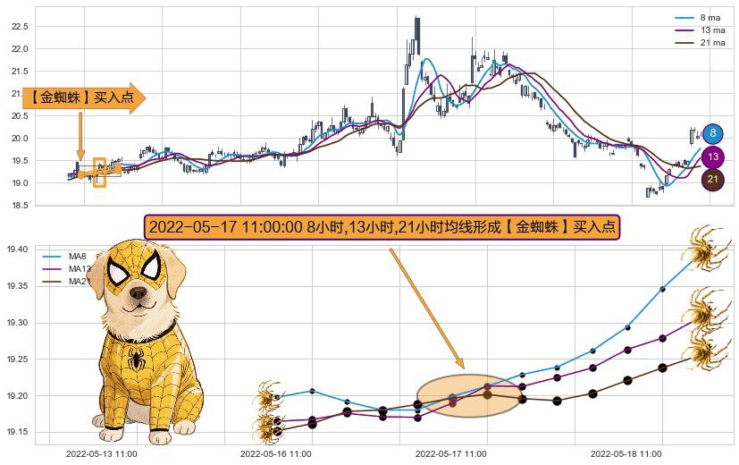 ⚀ 2022-05-17 11:00:00小时显现 8小时-13小时-21小时均线 【金蜘蛛】买入点 看多信号,后市看涨,买入