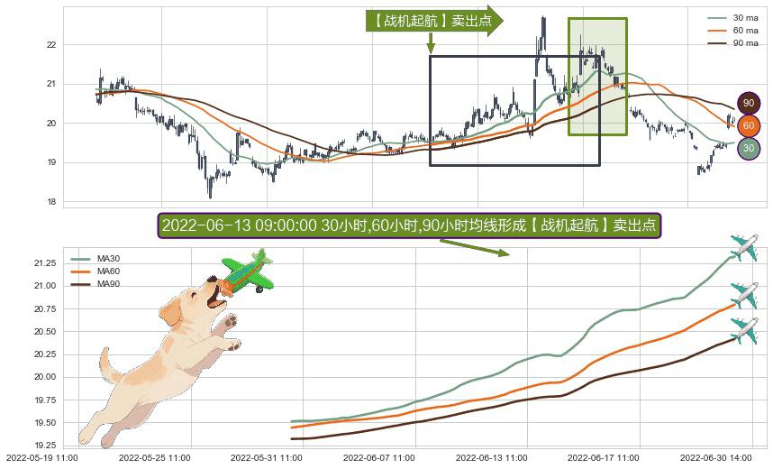 ⚀ 2022-05-31 09:00:00小时-2022-06-29 13:00:00小时显现 30小时-60小时-90小时均线 【战机起航】卖出点 看空信号,后市看跌,卖出