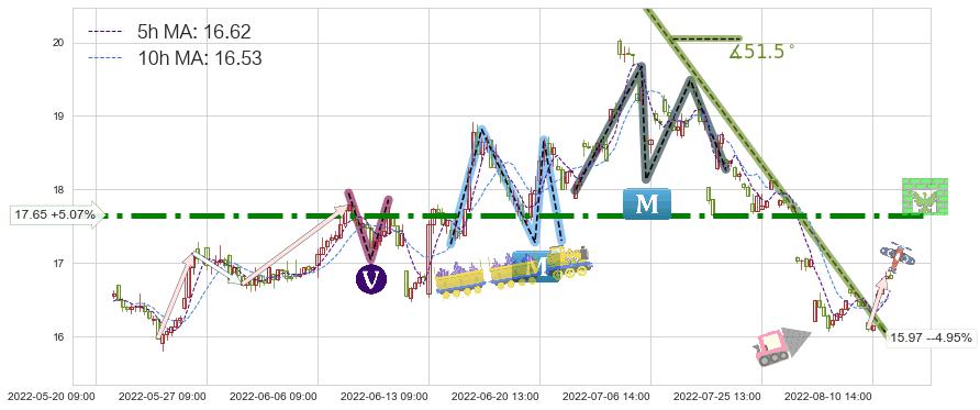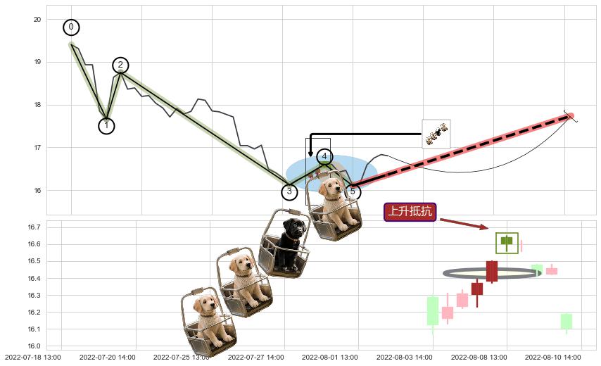 2022-07-22: 第一阻力位17.65有效抑制了下跌浪,成功阻止了价格的继续下跌。
