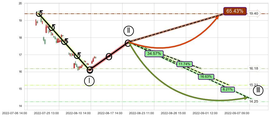 ➢ 循环浪继续向下【最低】位置(09-07:15, 14.25),匹配聚类样本比例17.95%, 可能性概率6.21%