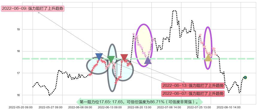 2022-06-13: 第一阻力位17.65强力阻拦了上升趋势,成功阻止了价格的继续上涨。