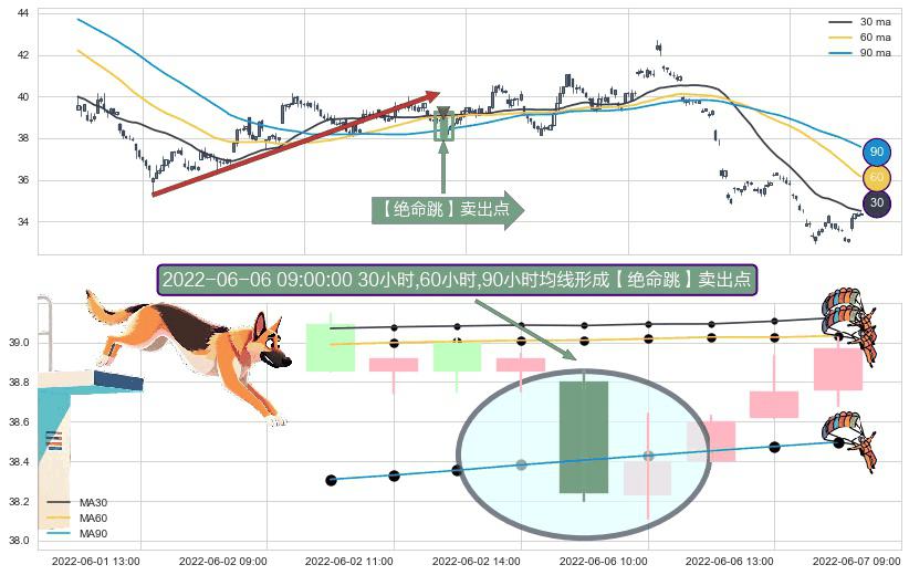⚀ 2022-06-06 09:00:00小时显现 30小时-60小时-90小时均线 【绝命跳】卖出点 看空信号,后市看跌,卖出