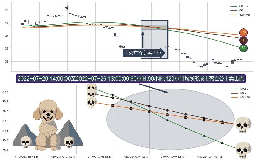 ⚀ 2022-07-21 13:00:00-小时至2022-07-26 13:00:00-小时显现 60小时-90小时-120小时均线 【死亡谷】卖出点 看空信号,后市看跌,卖出