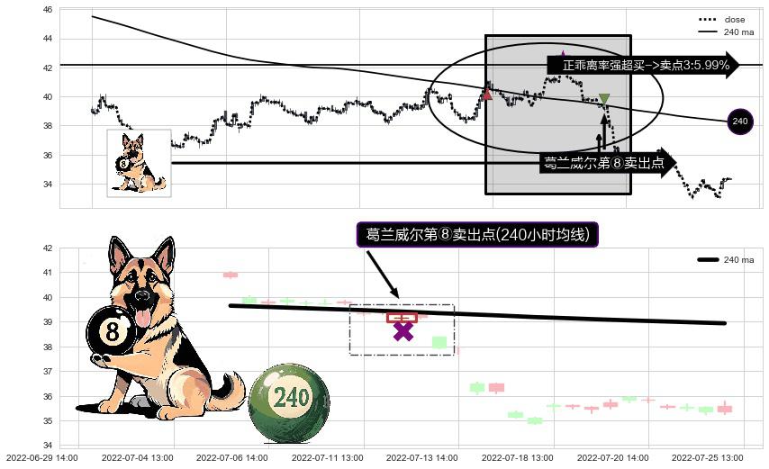 ⚀ 2022-07-12 13:00:00-小时显现 葛兰威尔均线 240小时均线 第⑧卖出点 下降趋势的中继信号,后市看跌,卖出信号
