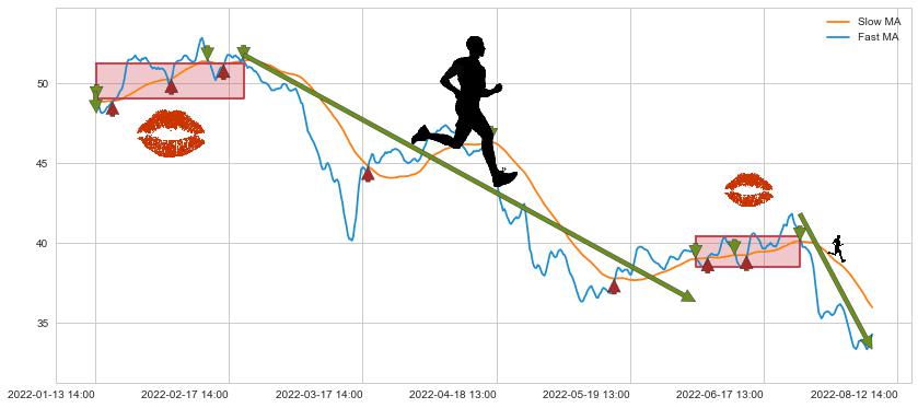 06-02 11:00至07-06 14:00 慢线与快线多次接触,存在上下穿越,有缠绕