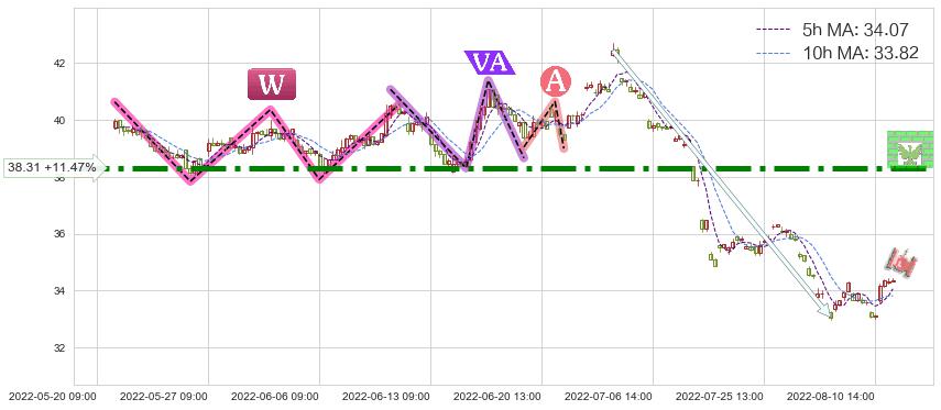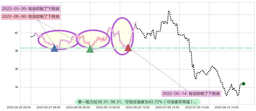 2022-06-14: 第一阻力位38.31有效抑制了下跌浪,成功阻止了价格的继续下跌。