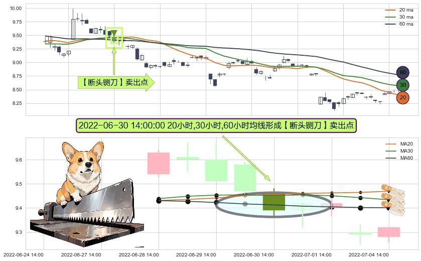 ⚀ 2022-06-30 14:00:00小时显现 20小时-30小时-60小时均线 【断头铡刀】卖出点 看空信号,后市看跌,卖出