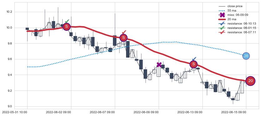⚂ 2022-06-30 14:00:00小时突然冒出一根大阴线,一下子下穿三条均线且收盘价收在各条均线之下