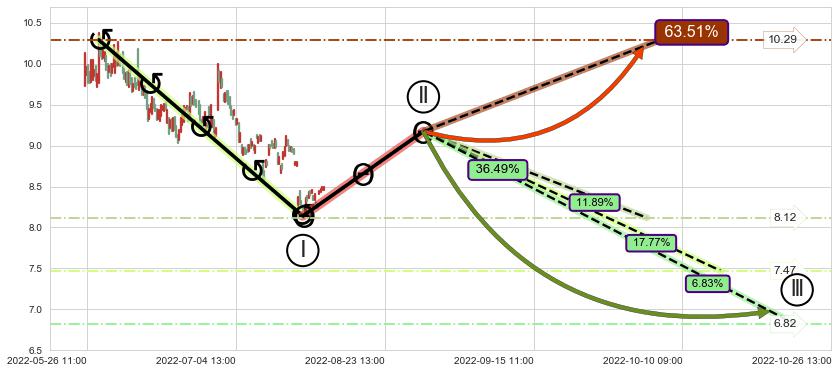 ♘ 支撑价格位8.02,可信任强度54.90%,距离最后交易2022-08-12 14:00形成的收盘价格8.48相差 -5.47%