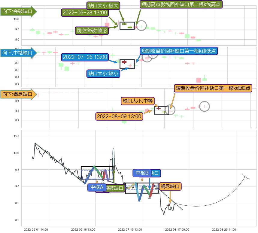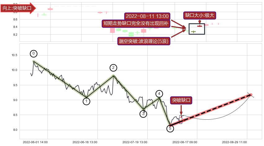 ➢ 2022-08-09 13:00形成:向下跳空【竭尽】缺口