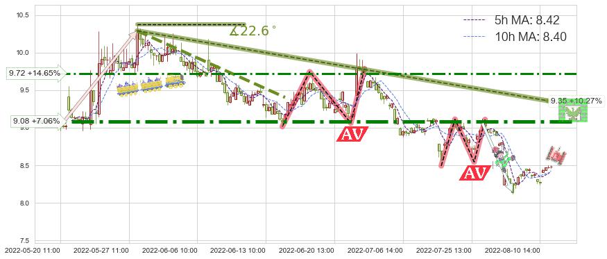 ♘ 阻力价格位9.72,可信任强度56.38%,距离最后交易2022-08-12 14:00形成的收盘价格8.48相差 +14.65%