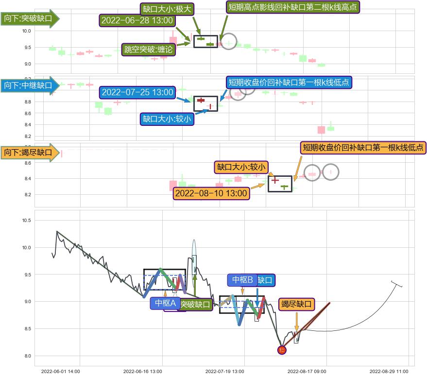 ➢ 2022-08-10 13:00形成:向下跳空【竭尽】缺口