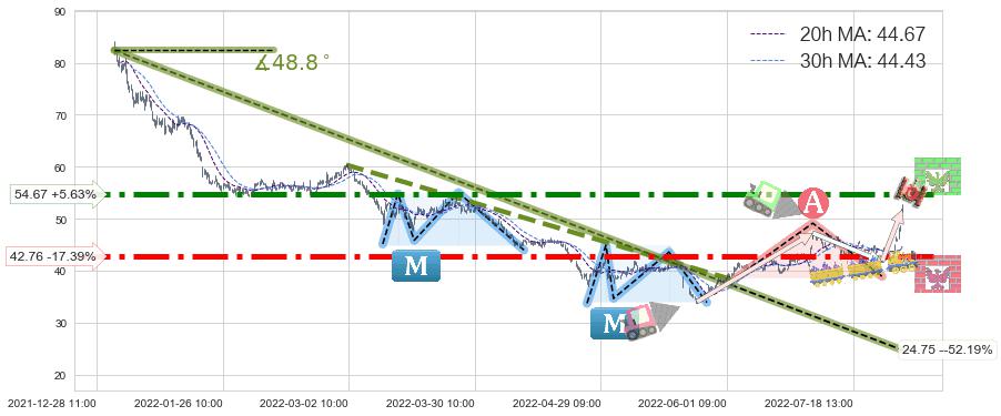 ♘ 支撑价格位42.76,可信任强度86.81%,距离最后交易2022-08-12 14:00形成的收盘价格51.76相差 -17.39%