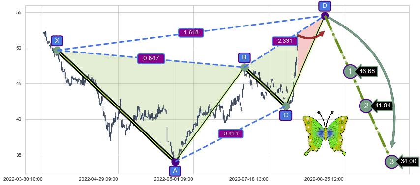 ➣ 未完成【蝴蝶】形态起点X: 04-07:09, 已到达C点: 08-02:14, 预测最终D点: 08-19:15, 共357交易小时