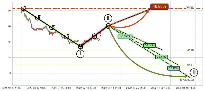 ➣ D点拟合预测价格54.51,距离最后交易收盘价格51.76相差 +5.32%