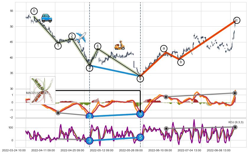 ➣ a,c调整浪MACD, RSI, KDJ走势都【未出现】背离,abc走势延续, 5浪反转概率增强