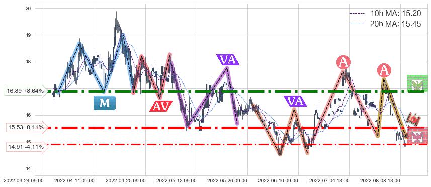 ♞ 10小时均线:15.20,20小时均线:15.45→ 快线<慢线