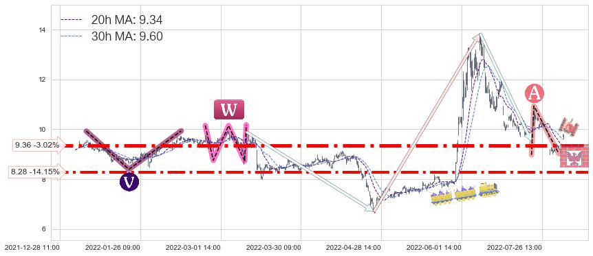 ♞ 20小时均线:9.34,30小时均线:9.60→ 快线<慢线