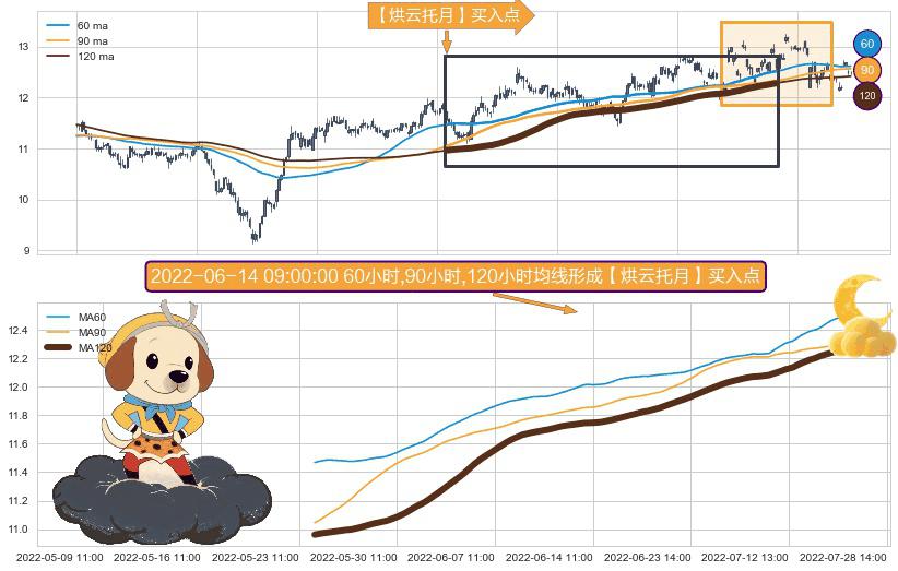 ⚀ 2022-05-24 10:00:00小时-2022-07-22 13:00:00小时显现 60小时-90小时-120小时均线 【烘云托月】买入点 看多信号,后市看涨,买入