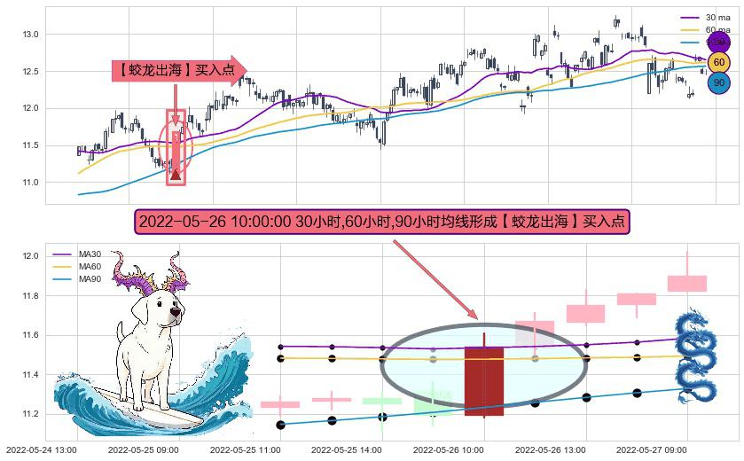 ⚀ 2022-05-26 10:00:00小时显现 30小时-60小时-90小时均线 【蛟龙出海】买入点 看多信号,后市看涨,买入