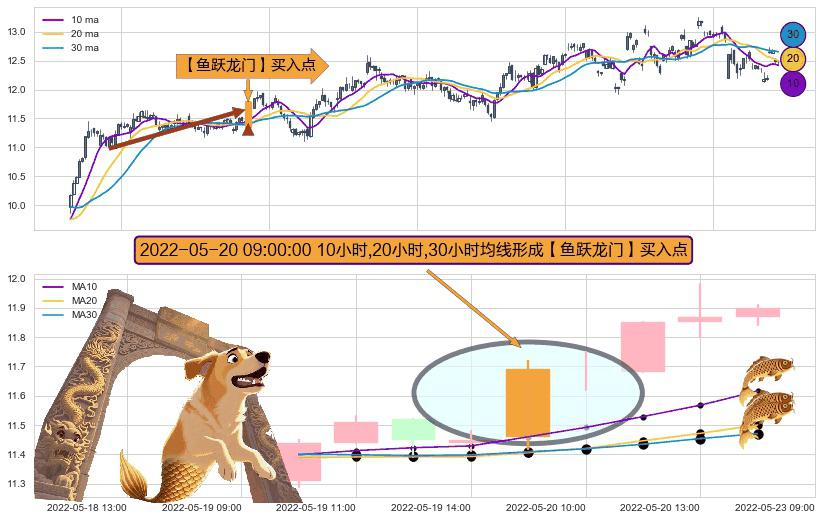 ⚀ 2022-05-20 09:00:00小时显现 10小时-20小时-30小时均线 【鱼跃龙门】买入点 看多信号,后市看涨,买入