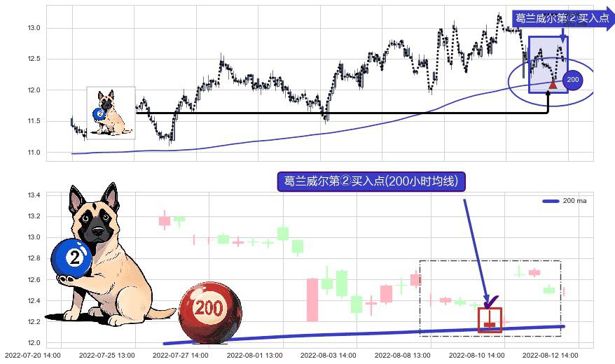 ⚀ 2022-08-10 13:00:00-小时显现 葛兰威尔均线 200小时均线 第②买入点 上升趋势的中继信号,后市看涨,买进信号