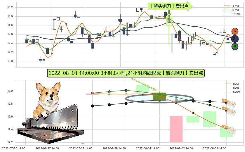 ⚀ 2022-08-01 14:00:00小时显现 3小时-8小时-21小时均线 【断头铡刀】卖出点 看空信号,后市看跌,卖出