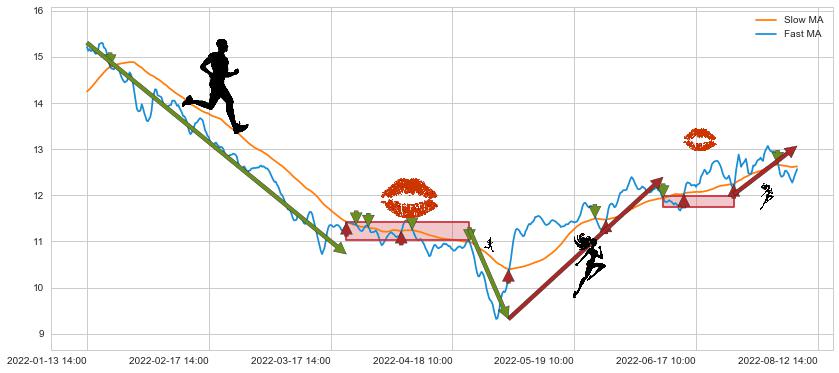 06-09 14:00至07-07 14:00 慢线与快线多次接触,存在上下穿越,有缠绕