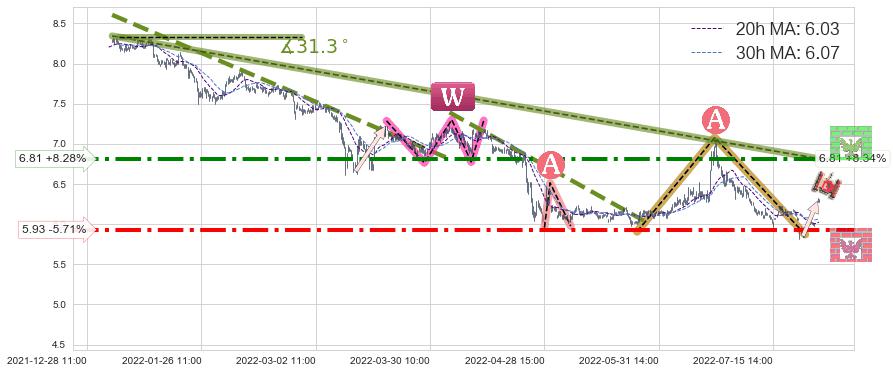 ♞ 20小时均线:6.03,30小时均线:6.07→ 快线<慢线