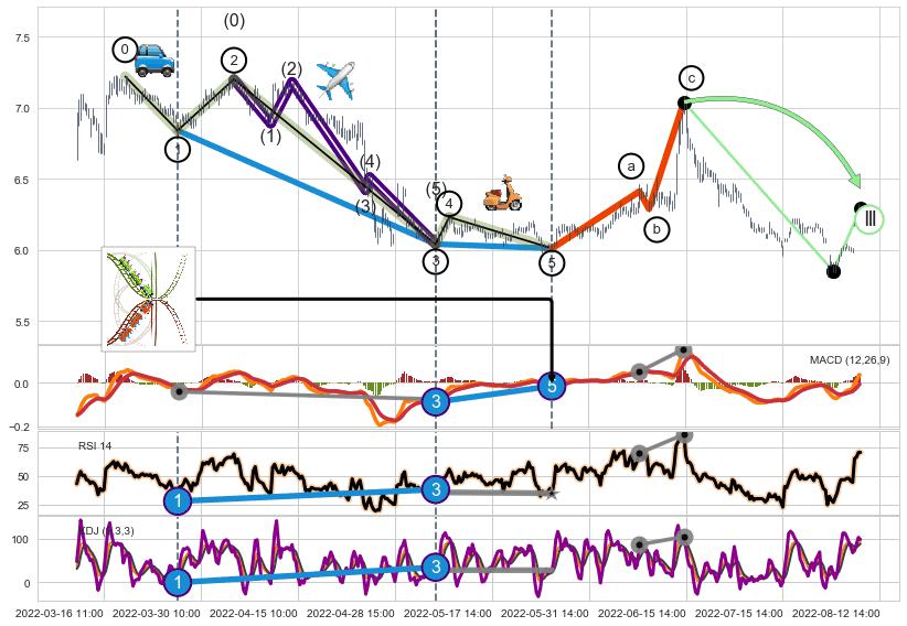 ➢ a,c调整浪MACD, RSI, KDJ走势都【未出现】背离,abc走势延续, 5浪反转概率增强