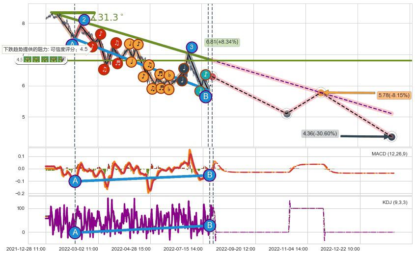 ♘ 阻力价格位6.81,可信任强度75.59%,距离最后交易2022-08-12 14:00形成的收盘价格6.29相差 +8.28%