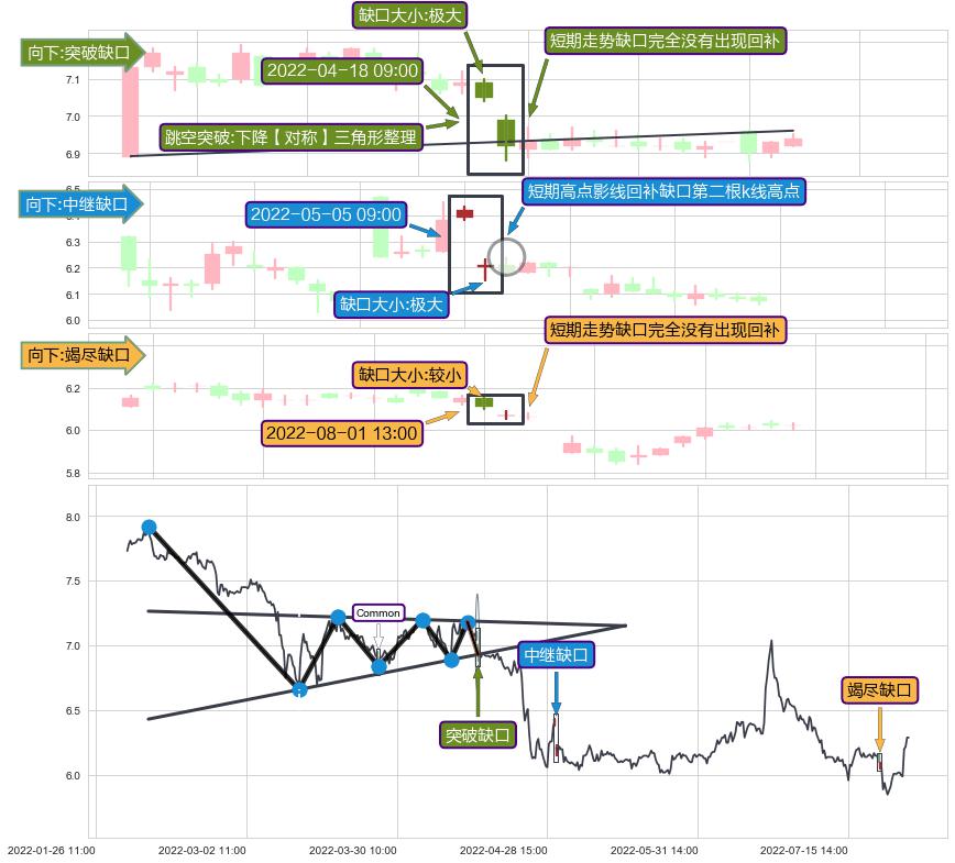 ➢ 2022-08-01 13:00形成:向下跳空【竭尽】缺口