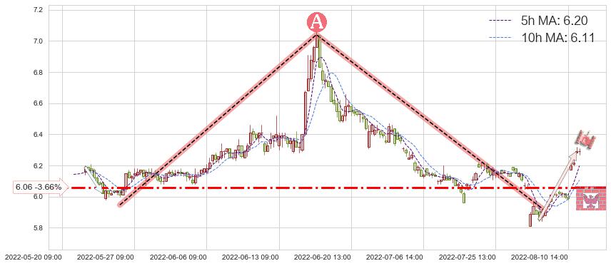 2022-06-02: 第一支撑位6.06有效抑制了下跌浪,成功阻止了价格的继续下跌。